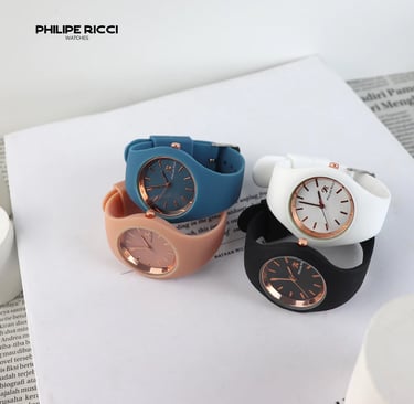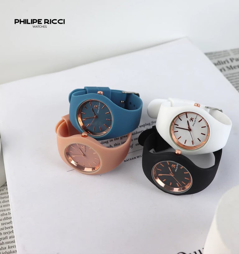 PhiLipe Ricci Jam Tangan Wanita Kecil Original Cewek Analog Strap Karet Tali Rubber